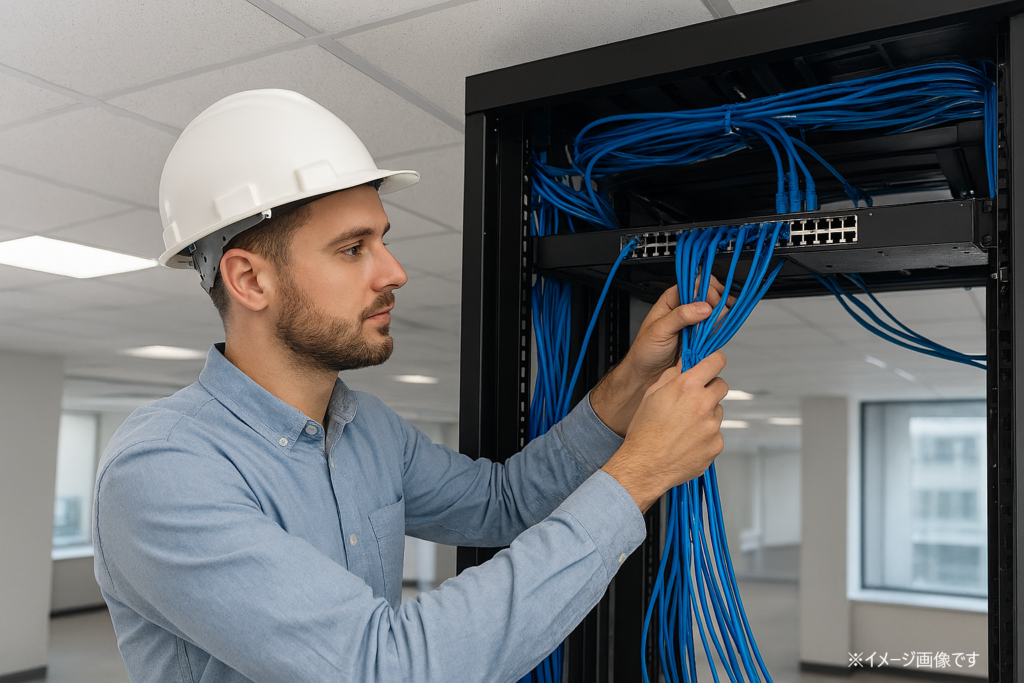 工事担任者の資格が活きるのは、通信設備の工事現場です。 特に、電気通信回線に端末設備を接続する作業が発生する場面では、工事担任者の関与が前提になることがあります。