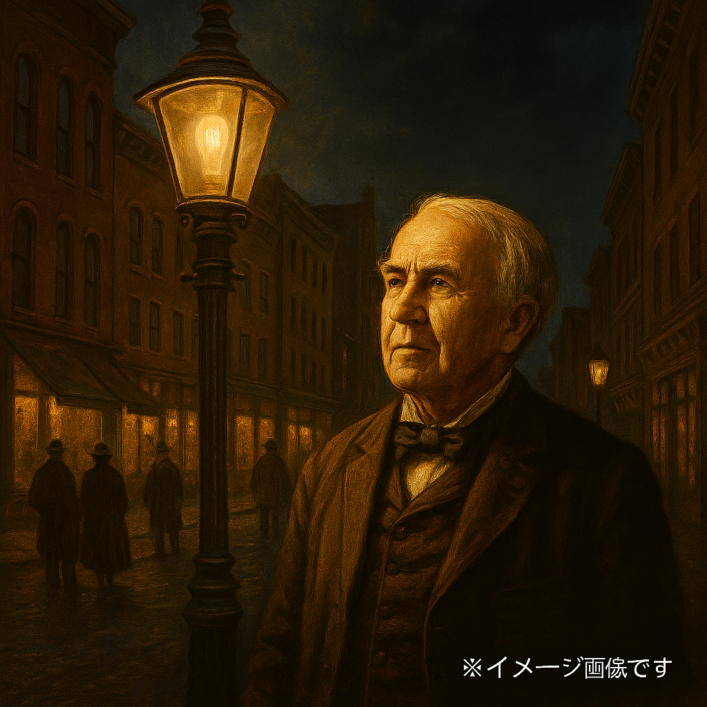 トーマス・エジソンは、その課題を発明だけで解決しようとはしなかった。 電球をつくるだけでなく、発電所を設計し、配電網を張り、料金の仕組みを考え、人々に安心を示す。 彼が取り組んだのは、電気を生み出すことではなく、電気を社会の中に根づかせることだった。